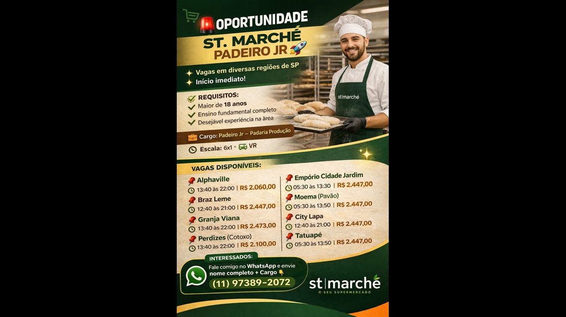 OPORTUNIDADE – ST. MARCHÉ | PADEIRO JR – experiência mínima de 6 meses
